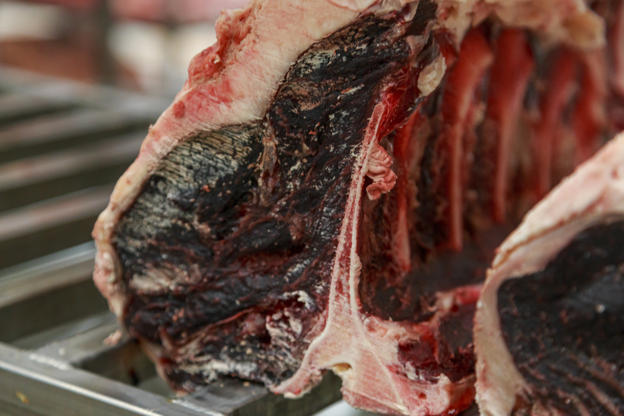 Dry aging is a natural method to lower the meat’s moisture content for a higher flavor density.