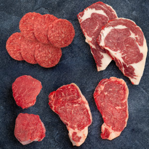 The secret’s out. Experience the lesser-known, but undeniably savory, steak cuts that butchers often reserve for themselves. Our Butcher’s Legacy pack contains three pairs of tender, flavorful and extremely versatile steaks to broaden your culinary horizons. You’ll enjoy two Coulette steaks, two Petite Tenders (Teres Major) Steaks, two Bavette Steaks, and two packages of patties worthy of any craft burger house menu.